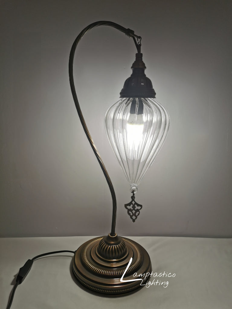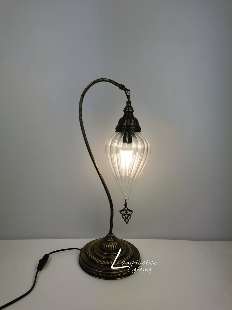 Ribbed Glass Swan Neck Turkish Table Lamp