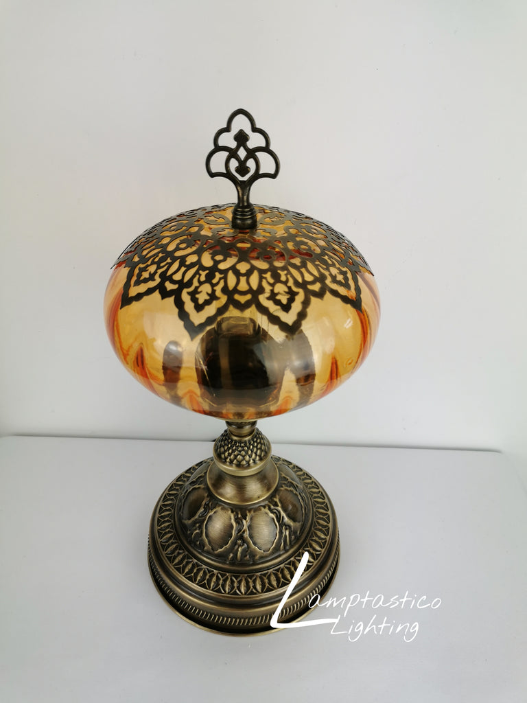 Luxurious Turkish Moroccan Style Orange Glass Table Lamp No 3
