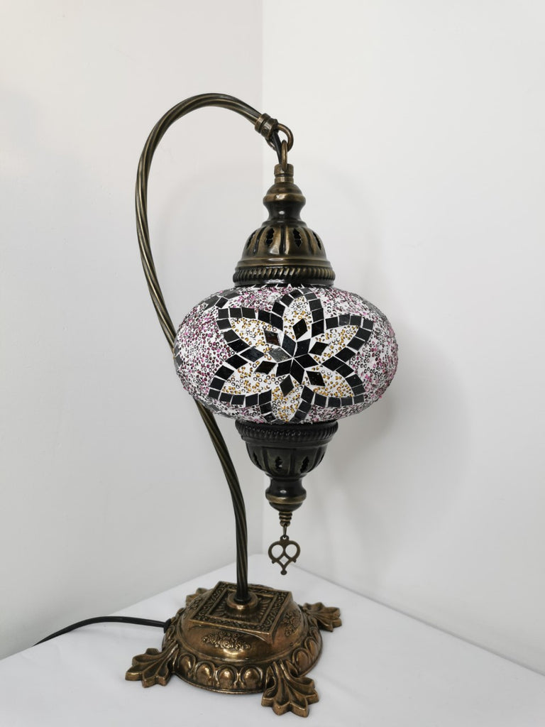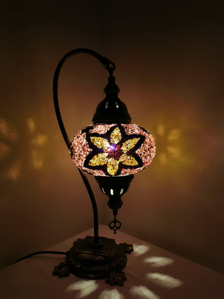Turkish Mosaic Swan Neck Pink/Gold Flower Table Lamp No 3
